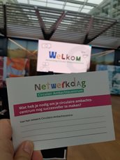 Aan het begin van de dag konden deelnemers hun behoeften van het programma kenbaar maken op een kaartje. Wat bleek is dat de behoefte aan voorbeelden, groot en klein, nog steeds aanwezig is. Domein overstijgend denken is ook een wens: een roep om een meer integrale aanpak, en ook de behoefte om juist buiten bekende kaders te denken en te doen. Marco Kortland van de gemeente Lansingerland, en ook bestuurslid van NVRD-West, vatte deze gedachtegang mooi samen: “We moeten versnellen, belemmeringen aanhoren en die overwinnen. Deze zomer gaat de nationale wetgeving rond het recht op reparatie in. Dat momentum moeten we met z’n allen benutten.”