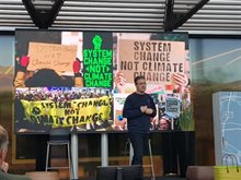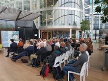 Dit jaar werd de bijeenkomst in het LEF Future Center van Rijkswaterstaat gehouden. Facilitator Johanna Minnaard opende de dag en kondigde een toepasselijke spreker aan op het gebied van duurzaamheid: auteur Kees Klomp. Johanna typeerde zijn keynote “confronterend, maar hoopvol en positief”. Een goed begin van de dag dus.